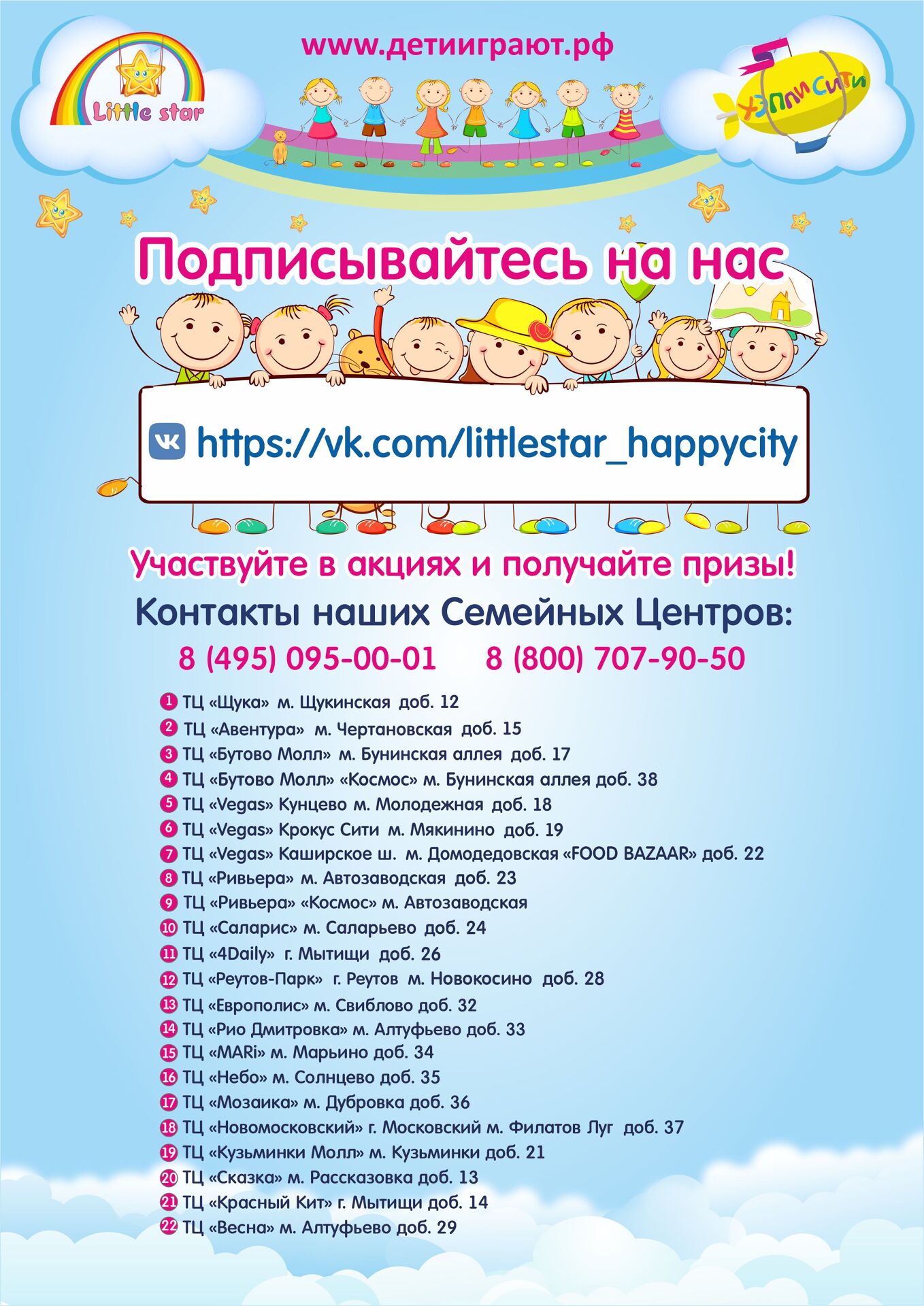 Little Star & Happy City - это cеть семейных ЦЕНТРОВ в трц Москвы и Мо
